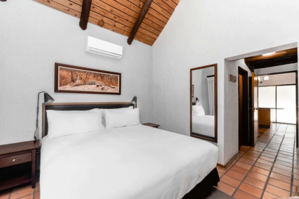 Enjoy a picturesque bushveld ‘home away from home’ that is ideal for family and friend groups that want a private, more independent stay. Our beautifully appointed Kruger self-catering chalets accommodate six people in three separate bedrooms with plush bedding including a master bedroom with a King bed, a Twin-bedded room, and a charming loft bedroom also with Twin beds. There are two bathrooms with shower and bathtub.