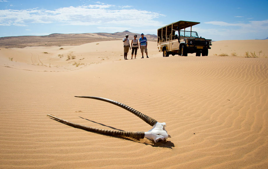 At dusk, chase the sun, exploring the many landscapes and wildlife of the Kunene region. Discover miles of untouched beaches on foot, by vehicle or high above, and soak in the many colours, landscapes and sounds of the iconic wildlife. Then rest in the cool shelter of our two exclusive luxury safari camps. Here a glorious dip in the pool, a feast of delicious cuisine and stories await